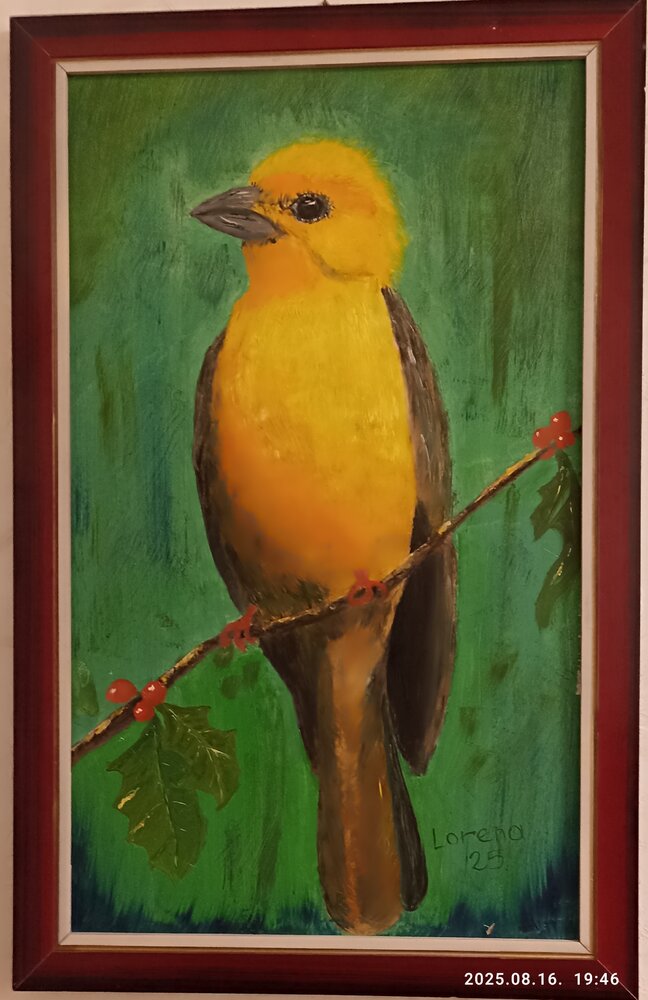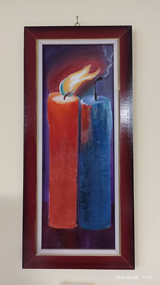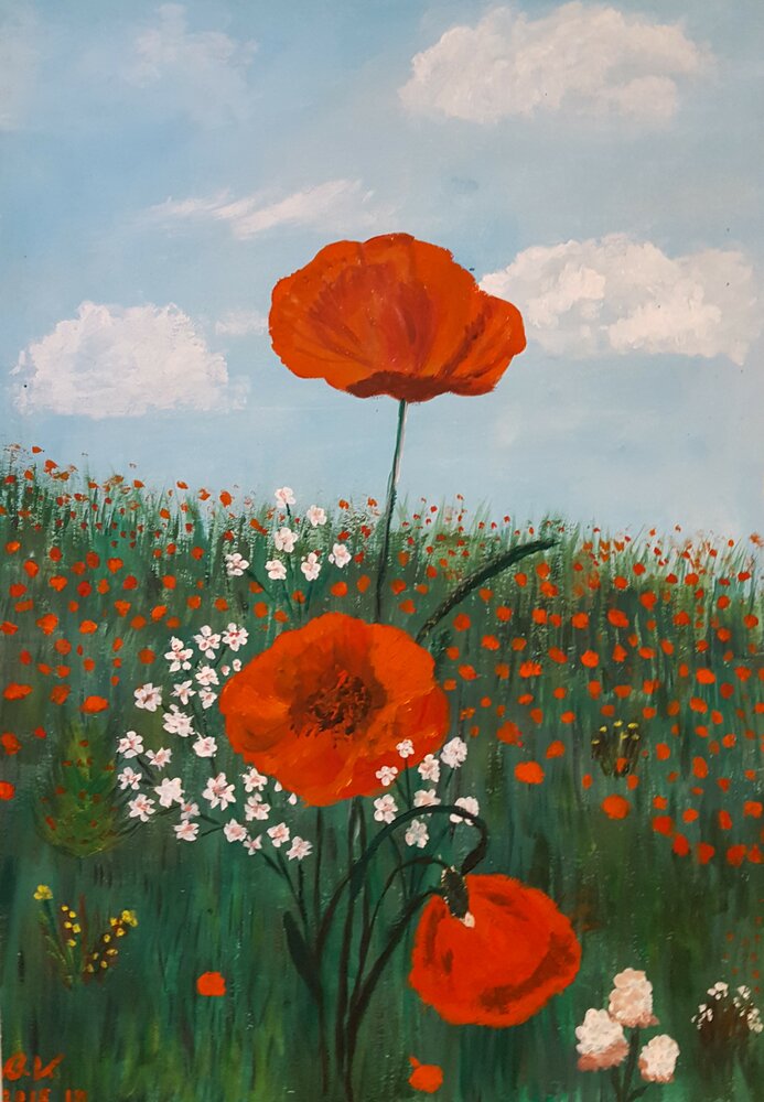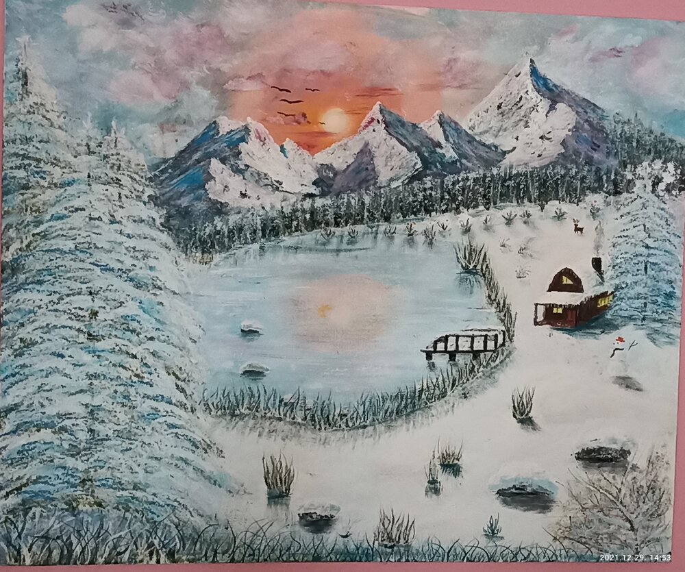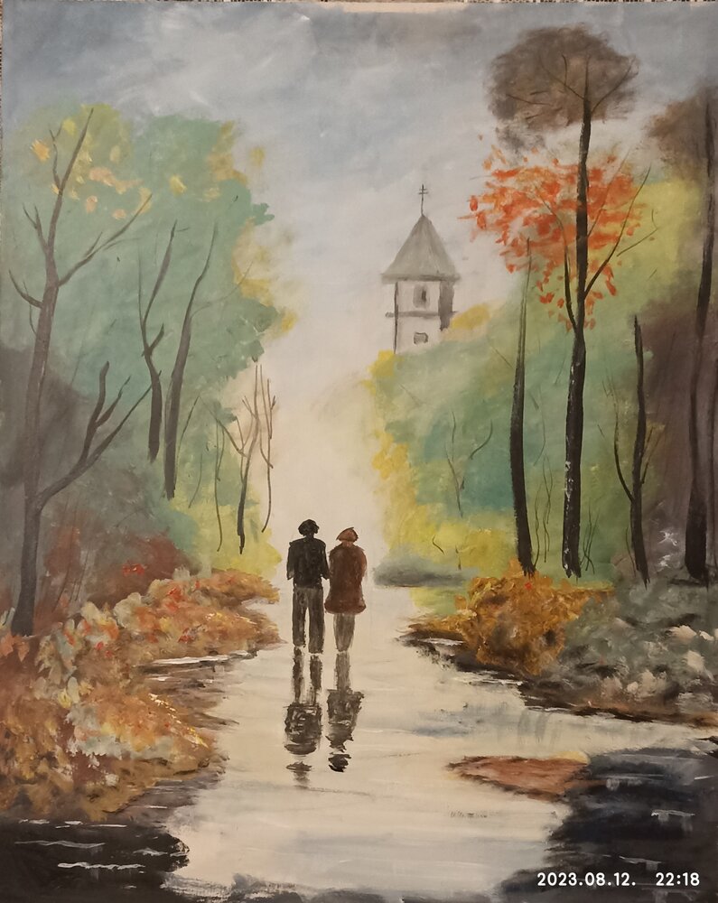 Közösen kiválasztott kép, festőtáborban festettük a lányokkal. Mindenki belevitte a saját stílusát, neten találtuk a képet, kicsit sem hasonlít. :) Mindenki saját címet adott neki.