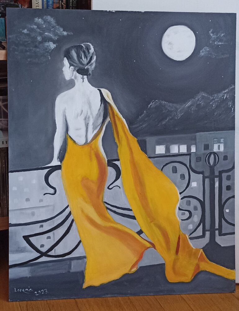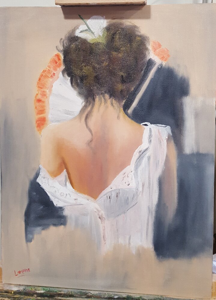 Kedves ismerősöm szóvá tette, hogy mindig háttal álló nőt festek, az arc rejtve van.