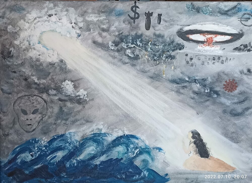 Nagyon borús hangulatban festettem, először a XXI. század nevet adtam neki, de nem tetszett, mert az "örök optimista"-ként nem adhatok negatívan hangzó címet egy képnek.