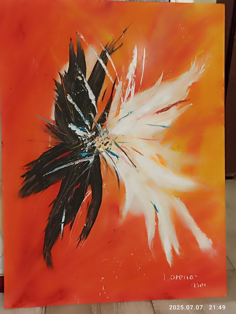 Első absztrakt képem. Nem szívesen álltam neki a feladatnak, viszont mire a végére értem, megtetszett. Egyszerűségén, absztraktságában érthető a festmény.