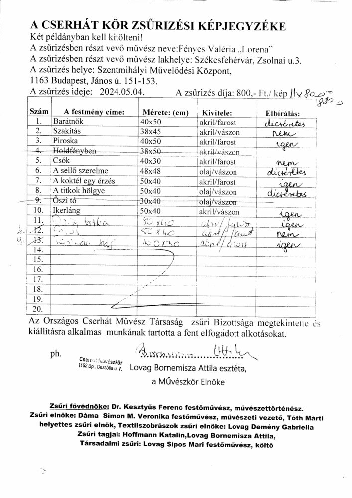 Patrónusomnak Simon M. Veronikának hálás vagyok a sok biztatásért, hogy megnyitotta első kiállításomat 2023. november 24-én és megerősített abban,hogy képeimet zsűriztessem.